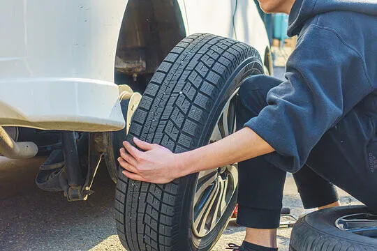 車検と一緒にスタッドレスタイヤまたはノーマルタイヤへの履き替えを無料で行います。ご希望の方はお気軽にお申し付けください。タイヤは当店でもご購入いただけます。